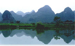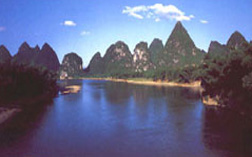 如诗如画的漓江是桂林山水的重要组成部分,它发源于桂林东北兴安县的猫儿山,流经桂林、阳朔,至平乐县恭城河口,全长170公里。由桂林至阳朔84公里的漓江,像一条青绸绿带,盘绕在万点峰峦之间,奇峰夹岸,碧水萦回,削壁垂河,青山浮水,风光旖旎, 犹如一幅百里画卷。漓江风光的美,不仅充分展现了“山青、水秀、洞奇、石美”的特点,而且还有着“深潭、险滩、流泉、飞瀑”的佳景。同时漓江有着不同的季节,不同的气候,自然有它不同的神韵。晴天的漓江,青峰倒映特别迷人。可烟雨漓江,赐给人们的却是另外一种美的享受;细雨如纱,飘飘沥沥;云雾缭绕,似在仙宫,如入梦境。 |