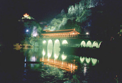 七星景区(国家AAAA级景区)位于漓江东岸,距市中心1.5公里,面积134.7公顷,因有七星山,七星岩而得名,是桂林市最大、历史最悠久、景点最多的综合性公园。七星山七峰并峙,宛如北斗星座;北四峰象斗魁,称普陀山,南三峰象斗柄,称月牙山。著名的七星岩就在普陀山山腹,岩洞雄奇深邃,洞中石钟乳、石笋、石柱、石幔……千姿百态、蔚为奇观。从一千多年前的隋唐时代起,七星岩就花桥夜色洞。桂林山水的精品“三山两洞一条江”,其中“两洞”即是指七星岩、芦笛岩。七星景区具有典型的岩溶地貌景观,它集山青、水秀、洞奇、石美于一体,历史上形成了“北斗七星”、“栖霞真境”、“月牙虹影”、“驼峰赤霞”、“龙隐奇迹”等名胜。园内树木花果成片,每当金秋时节,满园桂花涌金流银,芳香馥郁,茂树修竹,金桂丹枫,芳草绿茵,繁花似锦,使奇山秀水更加绚丽多姿。 |