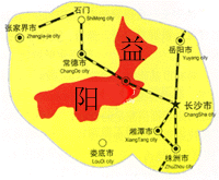 益阳市位于湖南省中部偏北,地处东经110°43’至112° 56’,北纬27°59 ’至29°32’。全市辖桃江、安化、南县三个县,沅江一个县级市,大通湖、北洲子、金盆、千山红、茶盘洲五个县级国营农场,市区设赫山、资阳、朝阳三个区。全市总面积12144平方公里,总人口449万,其中市区面积28平方公里,人口36万。 益阳资源丰富,是国家重要的粮、棉、鱼、猪商品基地,苎麻、食糖、茶叶、楠竹、芦苇产量均居湖南省第一,是全国著名的竹乡和鱼米之乡。